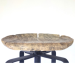 The use of Arduso wood and the antique distressed finish give the stool a vintage feel, the visible cracks are a natural characteristic, resulting from the sandblasting process and the wood’s natural aging, while the robust iron frame ensures its stability and longevity.