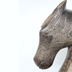 This captivating hand-carved museum-inspired nature of the wooden horse head sculpture, crafted from Arduso wood (Ailanthus excelsa Roxb), adds a touch of rustic elegance to any interior space.