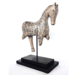 This captivating hand-carved wooden museum-inspired horse sculpture, crafted from Arduso wood (Ailanthus excelsa Roxb), adds a touch of rustic elegance to any interior space.