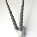This handcrafted wooden Oryx skull sculpture is made from Arduso wood (Ailanthus excelsa Roxb).